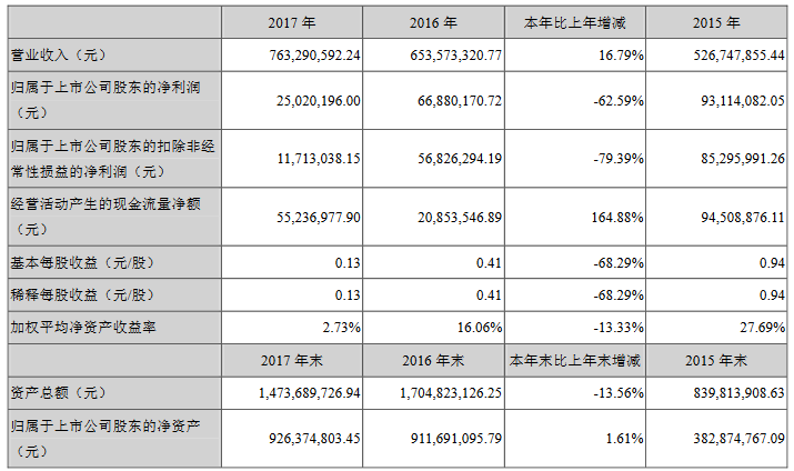 ? 珈偉股份2017年年度報(bào)告主要財(cái)務(wù)數(shù)據(jù)