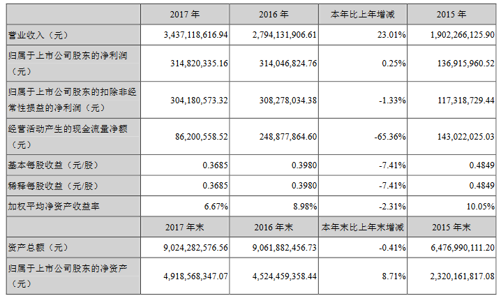 ? 三安光電2017年年度報(bào)告主要財(cái)務(wù)數(shù)據(jù)
